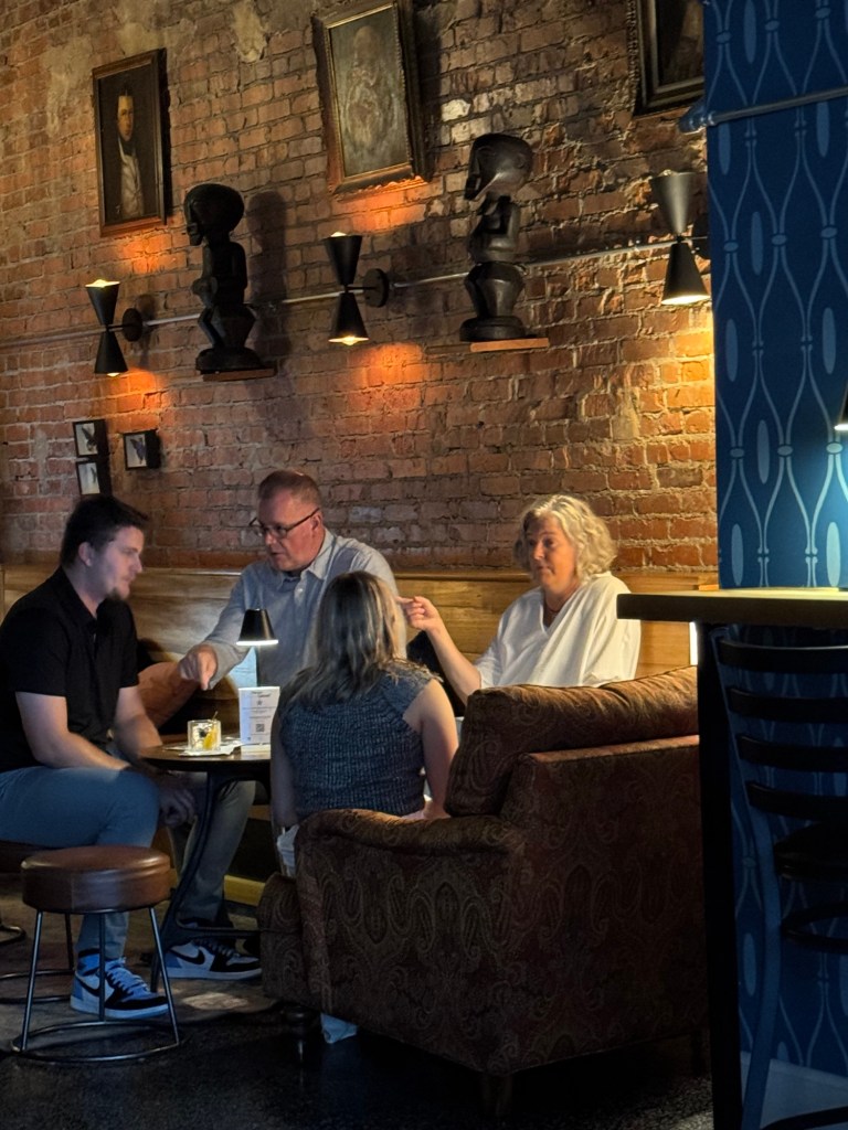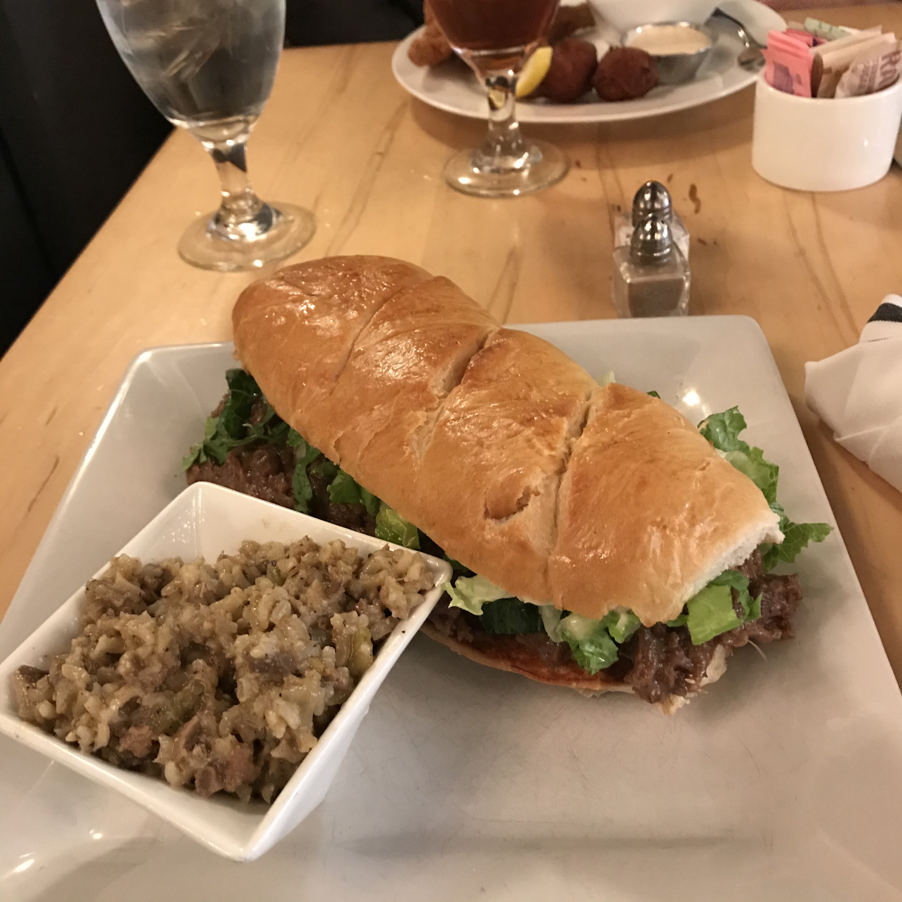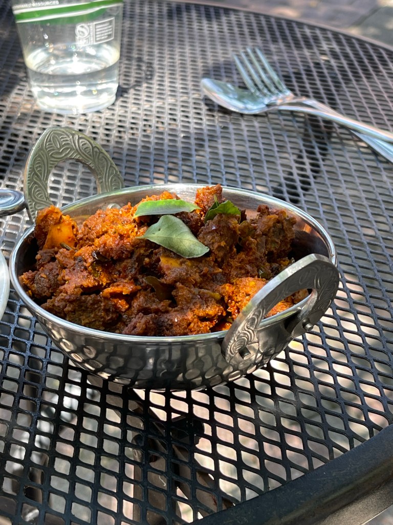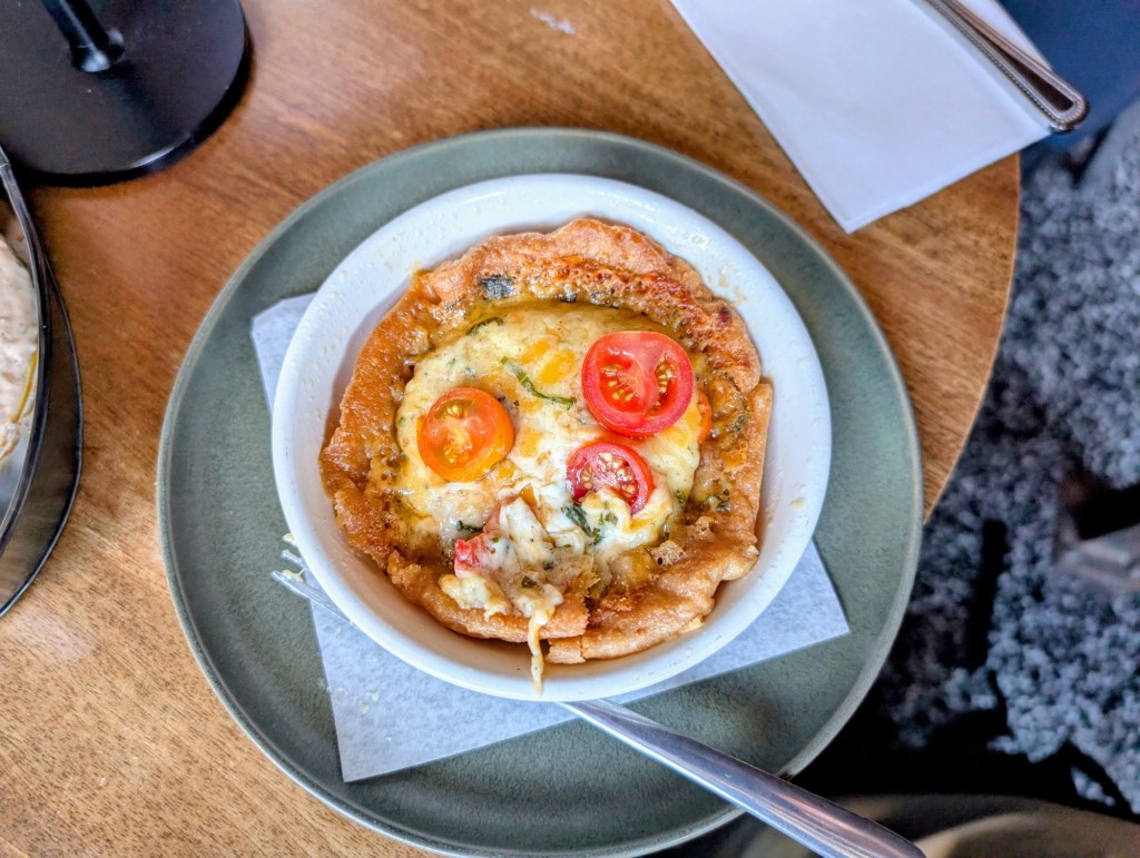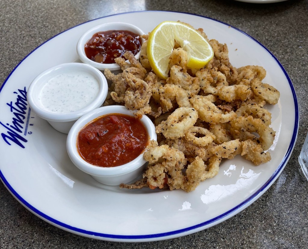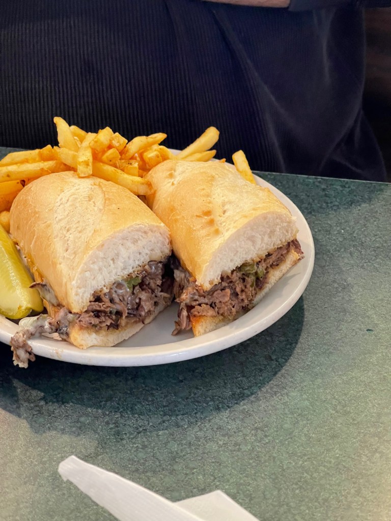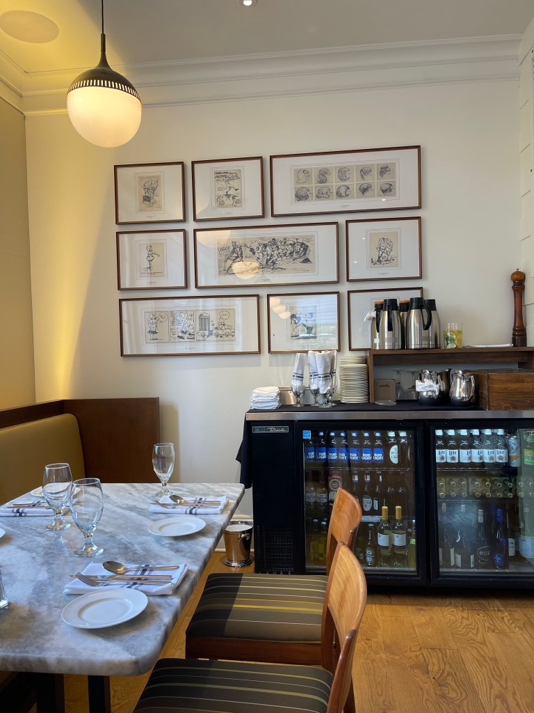 My menu choices for Jolie — started with the Gougeres, a savory cheesy puff pastry and A wonderfully creamy bowl of winter soup made with apples, smoked pecans and brown butter. The entree of choice steak frite — a tender flat iron in a sauce au poivre with herbes frite.