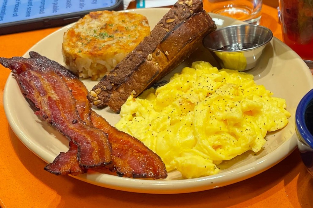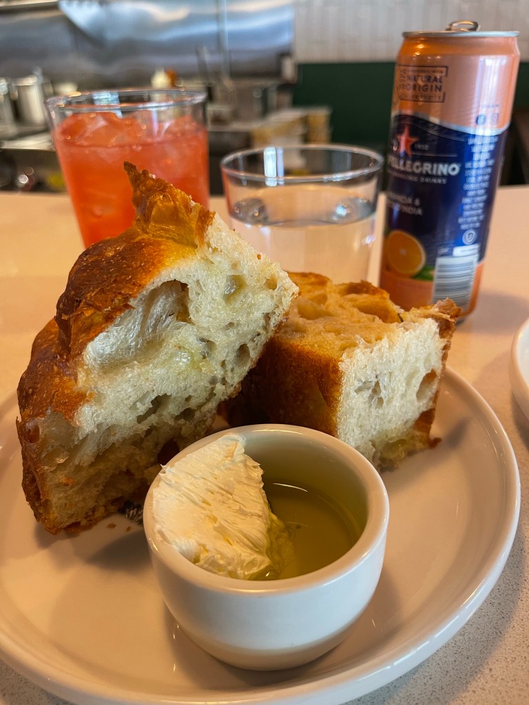 The homemade warm malted wheat rolls with sea salt and hickory butter are a must to order.
